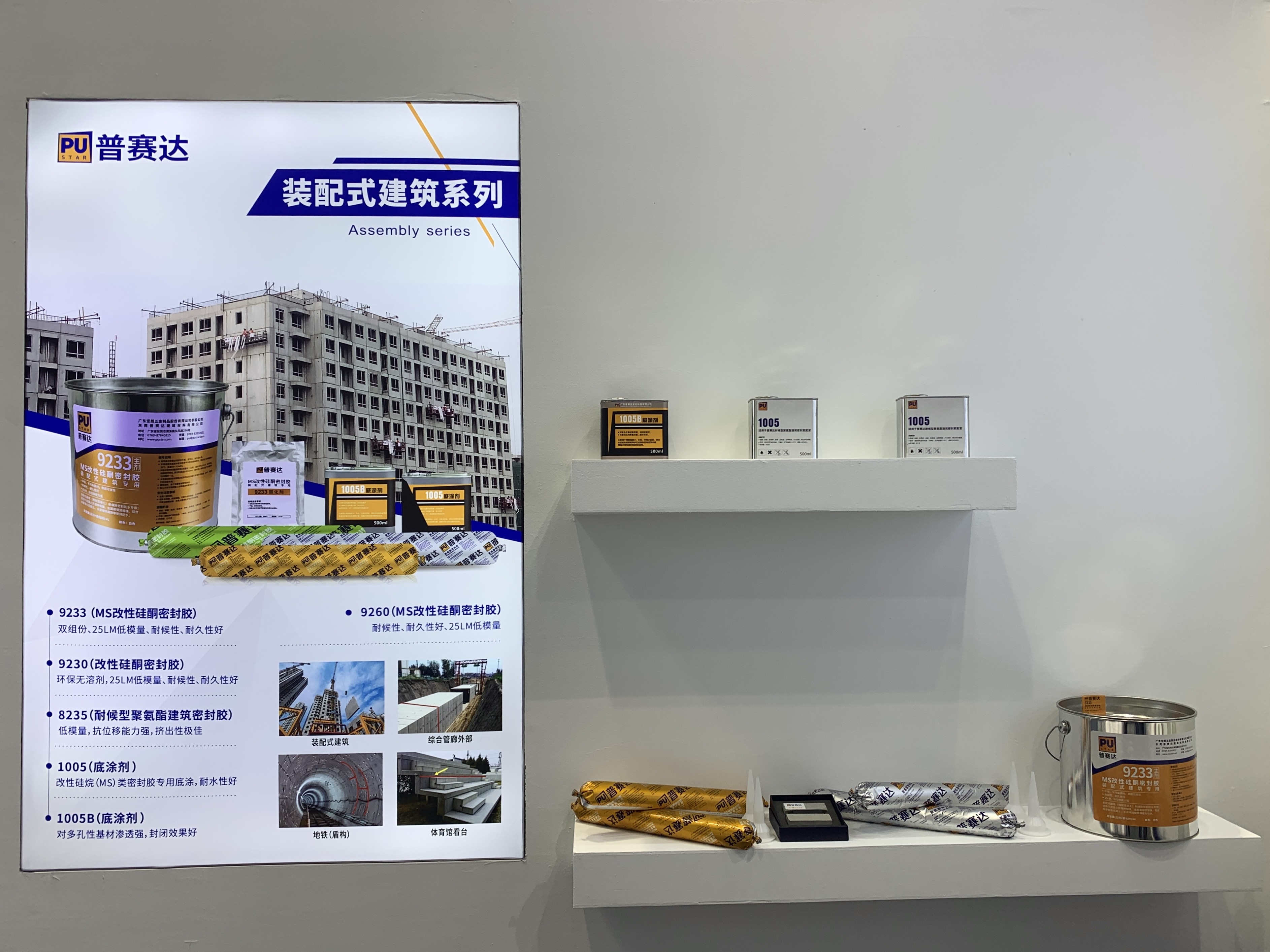 本屆展會,普賽達(dá)攜建筑全系列膠粘劑產(chǎn)品亮相,諸如建筑工程用25LM低模量的改性硅酮密封膠、耐候高性能的聚氨酯密封膠;內(nèi)裝用0級防霉無甲醛的硅酮膠;能夠牢固粘接多種基材的MS膠。除了展示經(jīng)典的建筑系列膠粘劑,鋁門窗專用組角膠的展出也成為了此次展會的一大亮點(diǎn)。