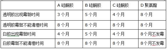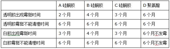 表一:集體飯?zhí)孟赐氤貎?nèi)部聚氨酯防霉膠與硅酮防霉膠防霉性能對比