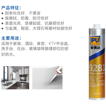 適用于家裝、酒店、食堂、KTV 中浴盆、洗手臺(tái)、灶臺(tái)、玻璃墻等接縫部位的密封防水。