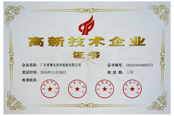 廣東普賽達(dá)密封粘膠有限公司榜上有名通過(guò)2016年國(guó)家高新技術(shù)企業(yè)復(fù)審。