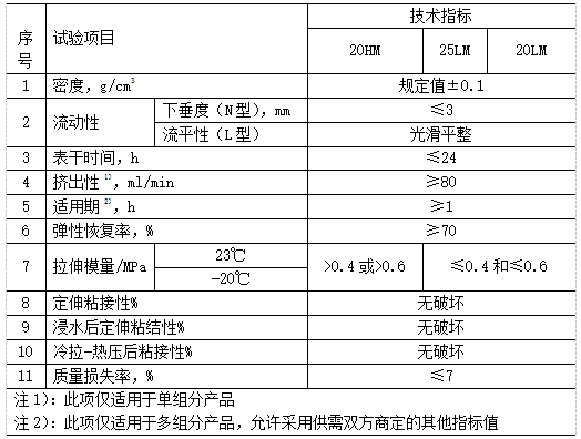 表1 聚氨酯密封膠標(biāo)準(zhǔn)JC/T 482-2003