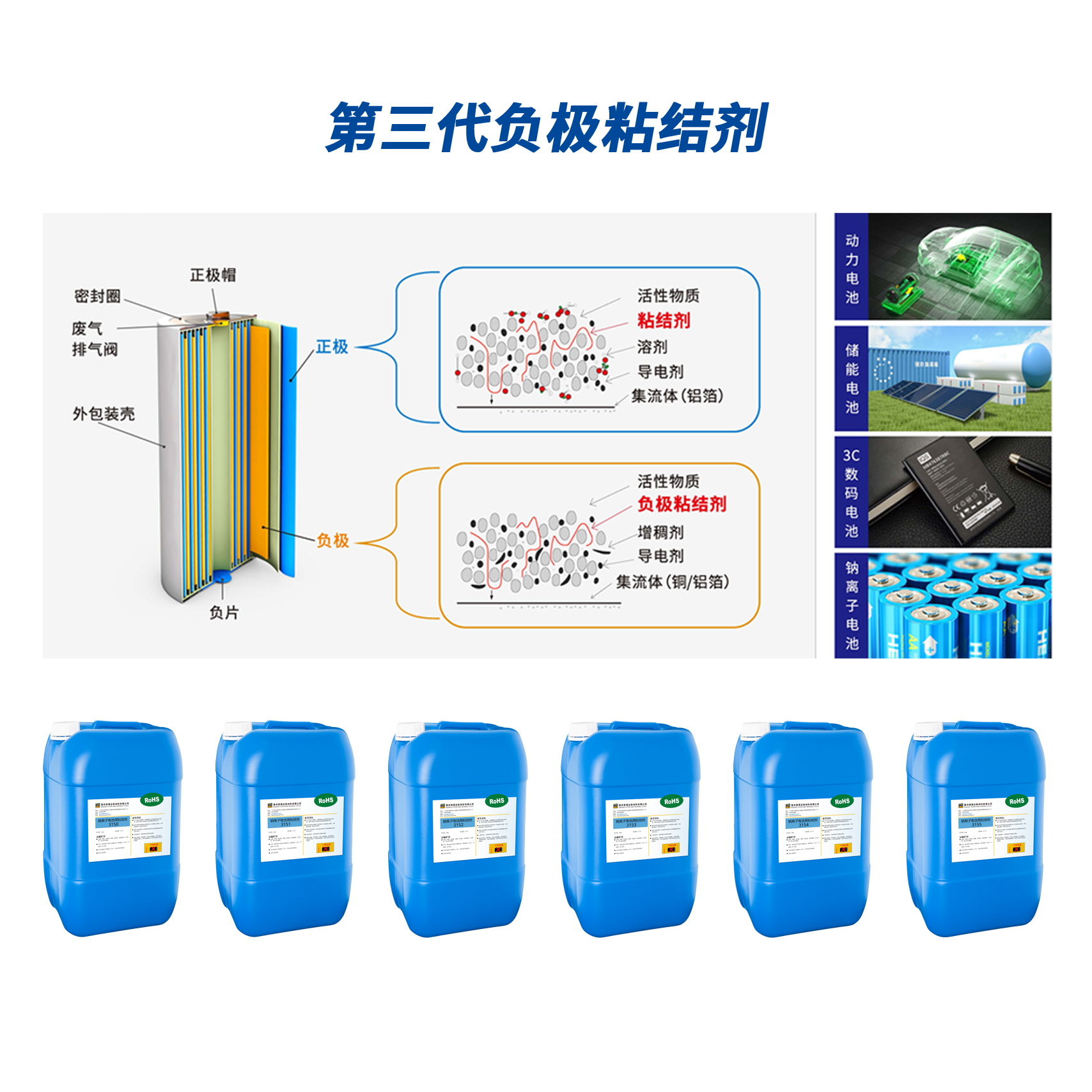 應(yīng)用于各種鋰離子電池及鈉離子電池負(fù)極漿料,適用于動力電池、儲能電池、3C數(shù)碼及電動工具等各類鋰離子電池。