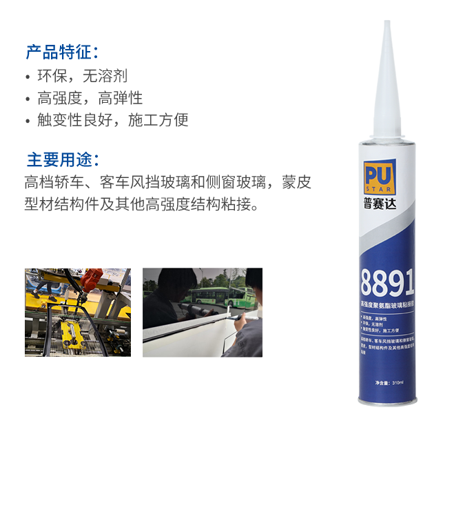 8891高強(qiáng)度聚氨酯玻璃粘接膠是一種單組分濕氣固化聚氨酯膠,具有良好的內(nèi)聚力和密封性能,對(duì)基材無(wú)腐蝕、無(wú)污染,對(duì)環(huán)境無(wú)污染。