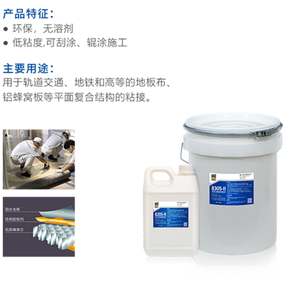 用于軌道交通、地鐵和高鐵等的地板布、鋁蜂窩板等平面復(fù)合結(jié)構(gòu)的粘接。