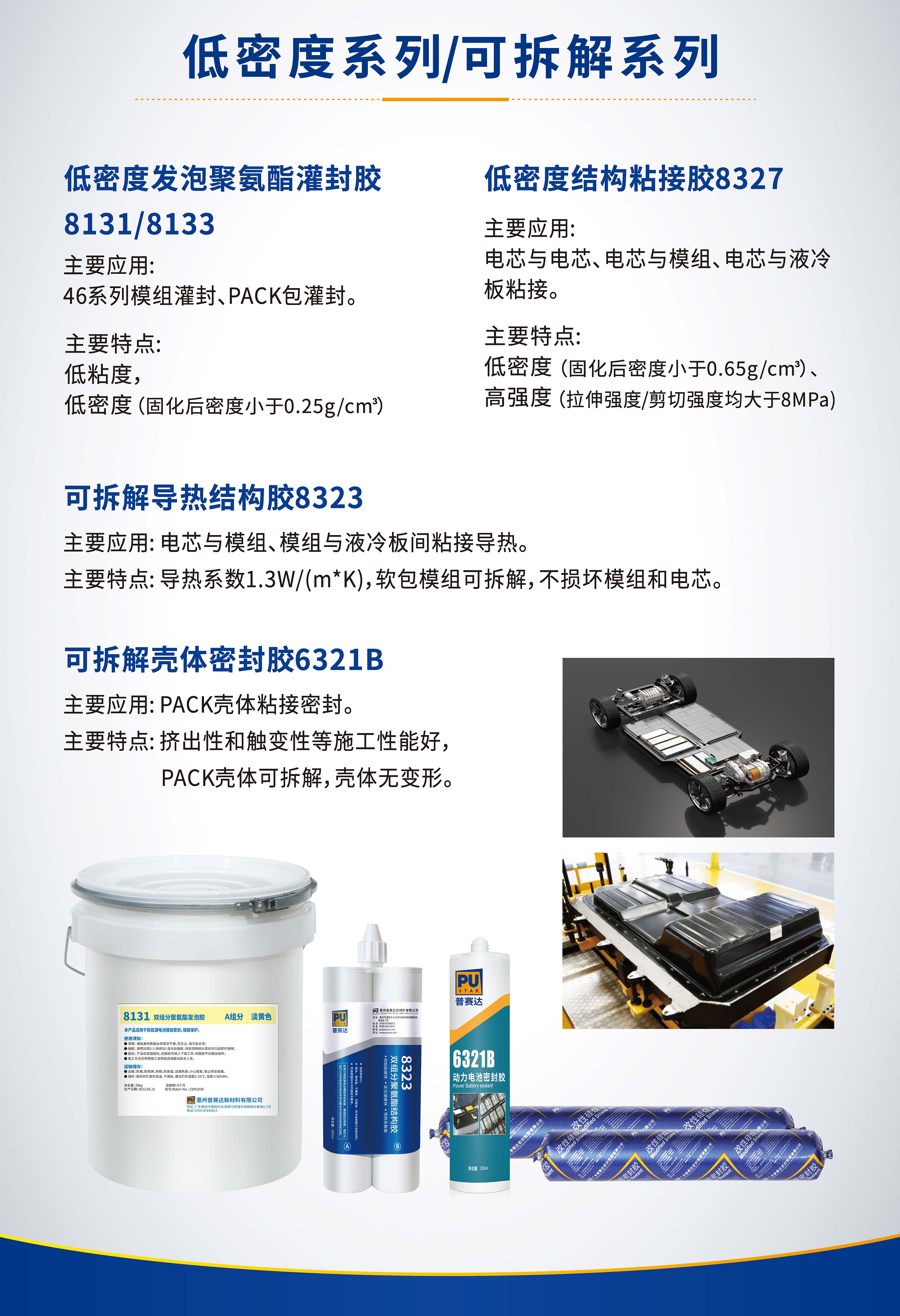 主要應(yīng)用于46系列模組灌封、PACK包灌封。電芯與電芯、電芯與模組、電芯與液冷板粘接。電芯與模組、模組與液冷板間粘接導(dǎo)熱。PACK殼體粘接密封。